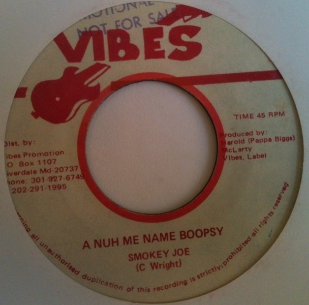 SINGLE / 7INCH / 45T : A Nuh Me Name Boopsy : Smokey Joe : Vibes : : Dancehall / Nu-roots : 1019463 : Neuf : 13.00€ : 0.20kg