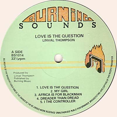 LP / 33T : Love Is The Question : Linval Thompson : Burning Sounds : : Oldies / Classics : 2008106 : Neuf : 40.00€ : 0.30kg