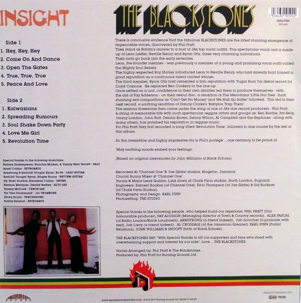 LP / 33T : Insight : The Blacksones : Burning Sounds : : Oldies / Classics : 2010212 : Neuf : 22.00€ : 0.30kg