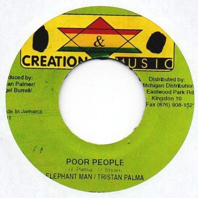 SINGLE / 7INCH / 45T : Poor People : Elephant Man , Tristan Palmer : Creation : Baba Boom : Dancehall / Nu-roots : 1027808 : Neuf : 5.00€ : 0.20kg